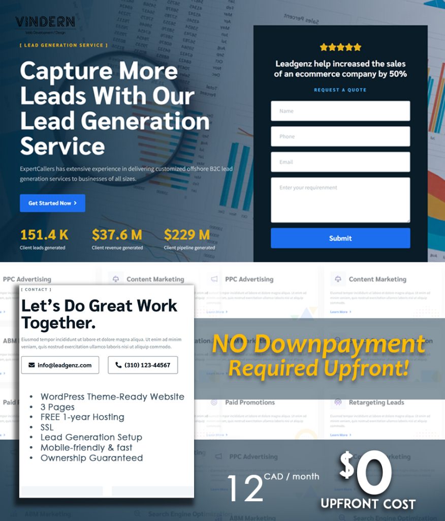 Vindern designs and sets up your professional WordPress lead-generation website using a proven theme.